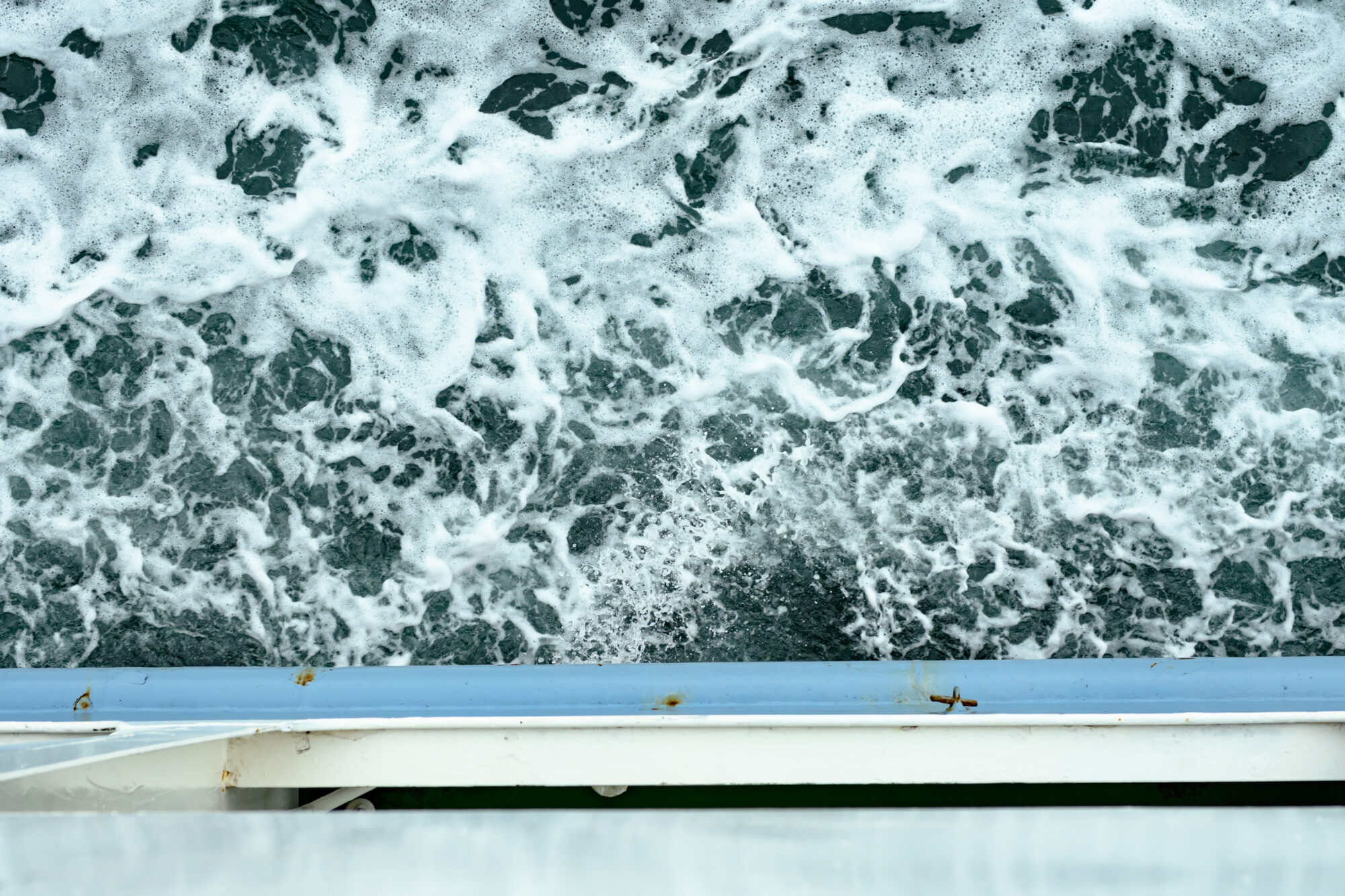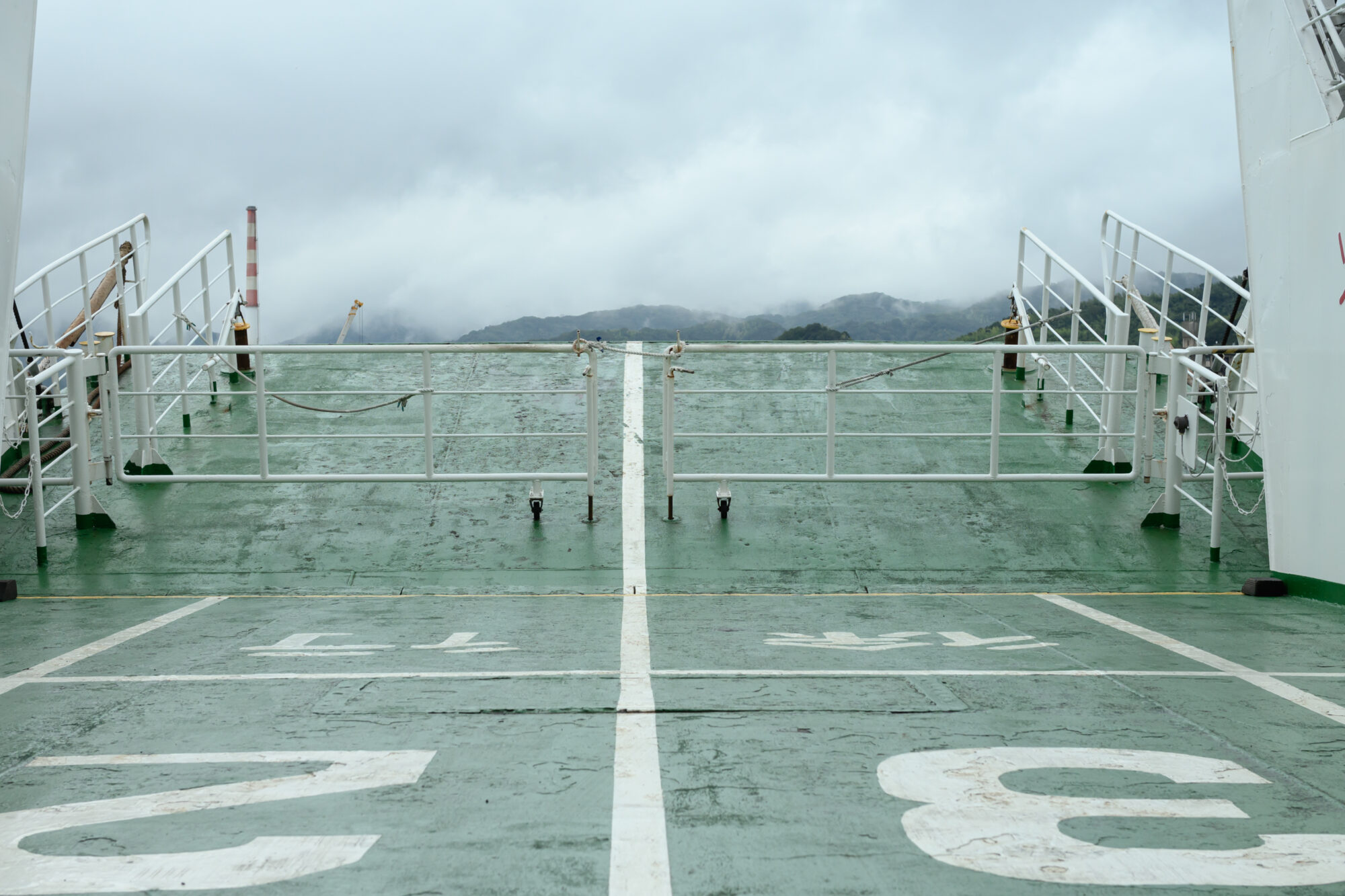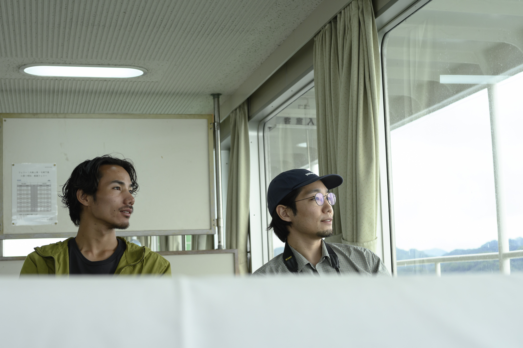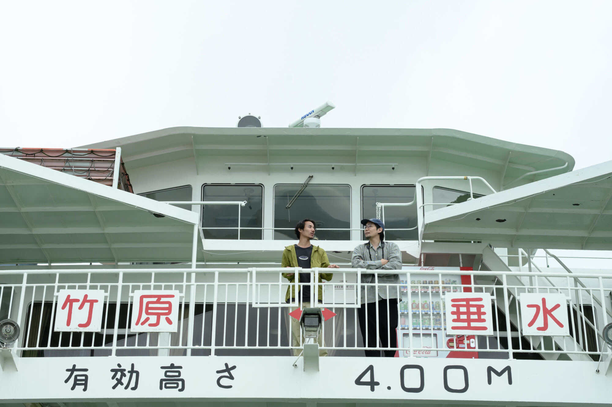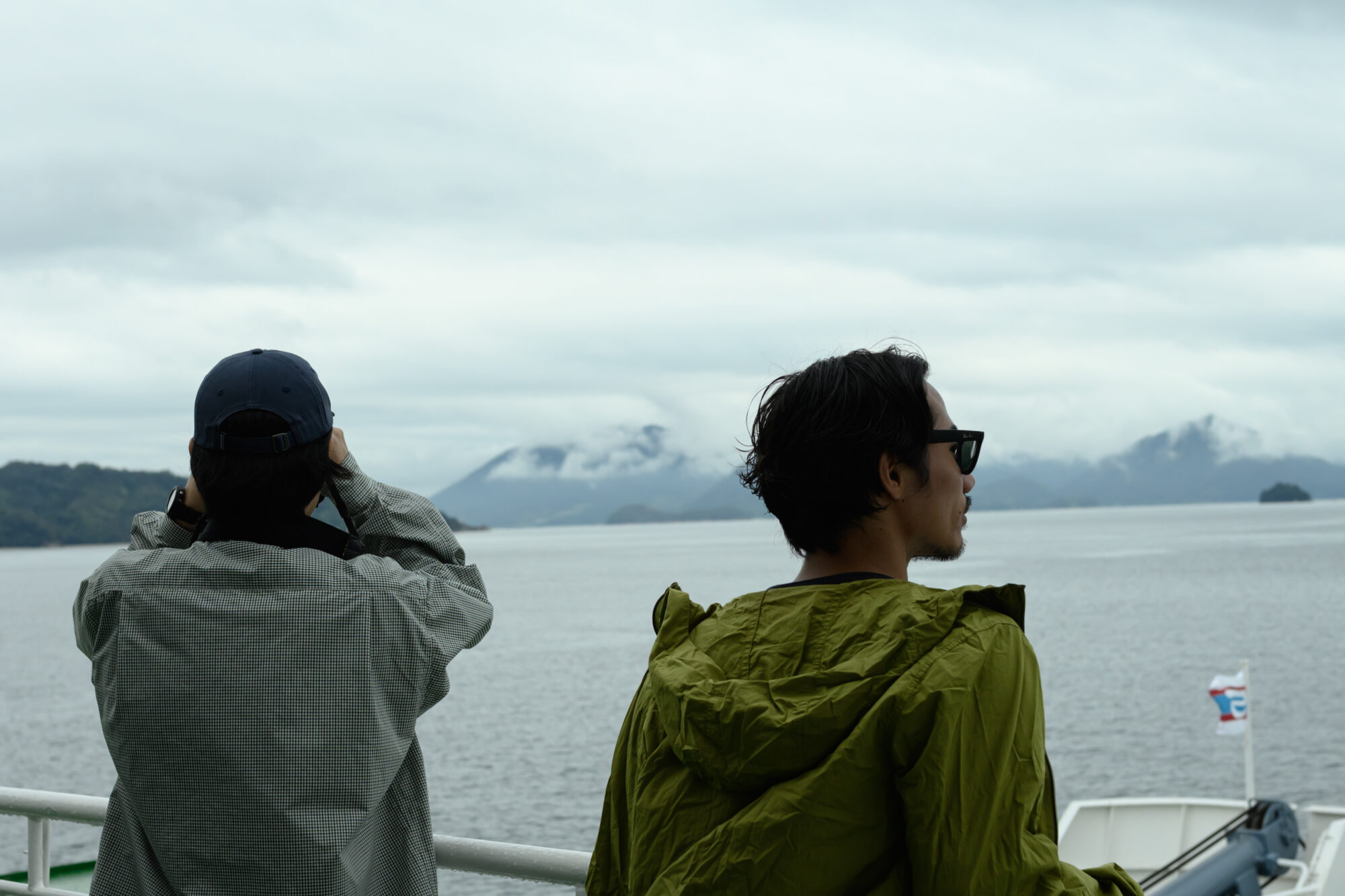鈴木さんと川路さんは、甲板の外へ。瀬戸内海の穏やかな潮風のなか、フェリーはゆっくりと港を離れていきます。
