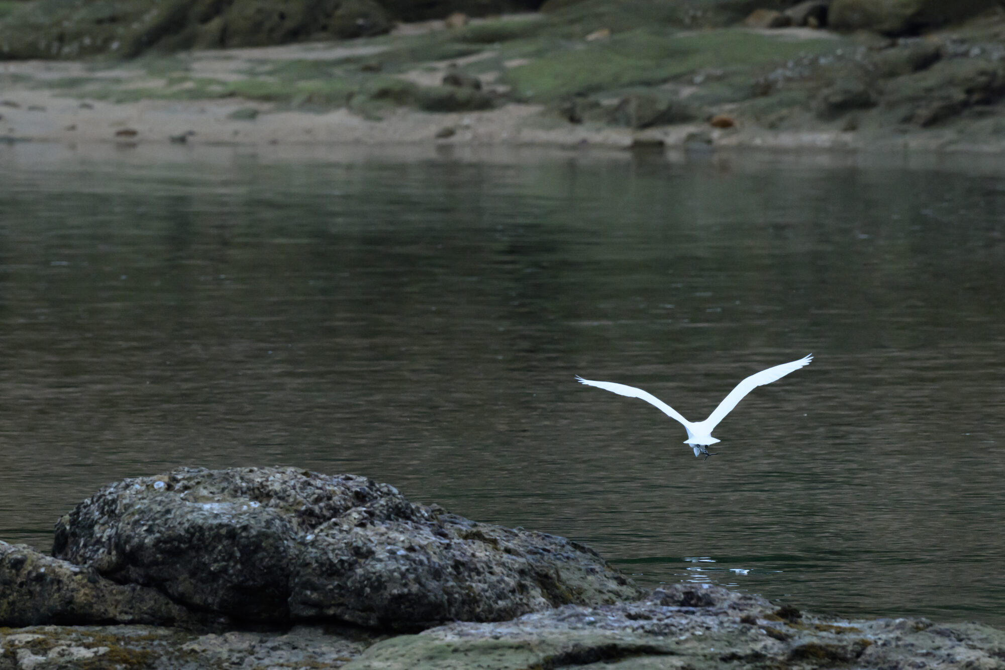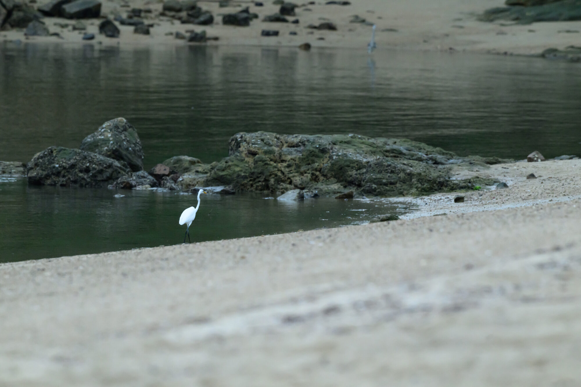 鈴木さん:足先が靴下を履いてるみたいに黄色かったらコサギなんだけどなあ。そうじゃないから、やっぱりダイサギか、それがチュウサギかもですね。