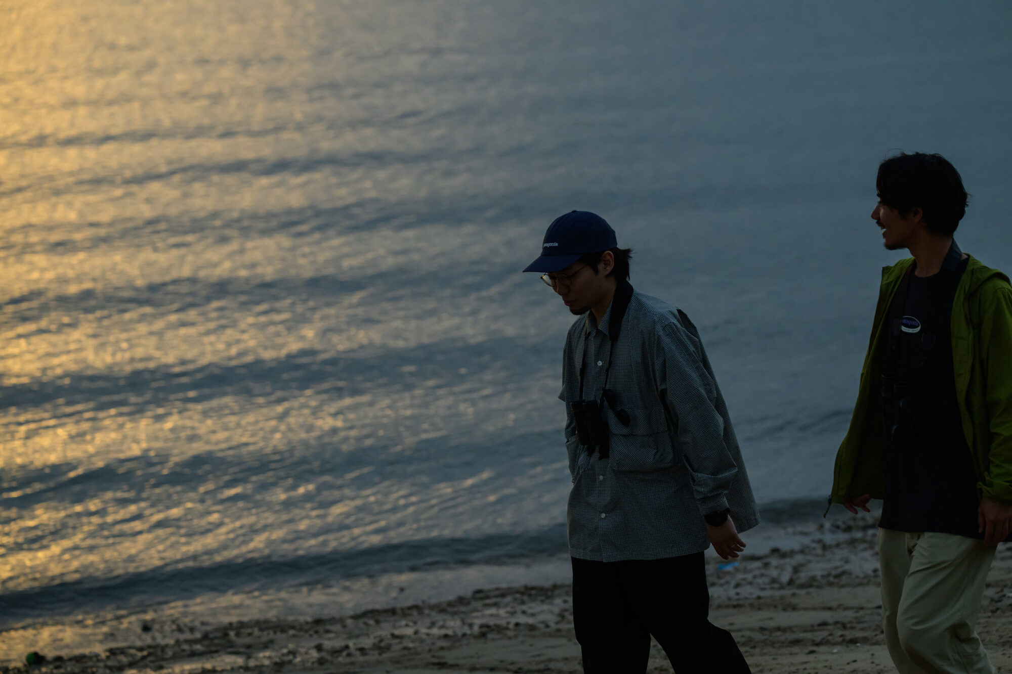 浜辺に到着した頃にはもう夕方。潮も引きはじめ、海鳥を観察するには絶好の時間帯です。