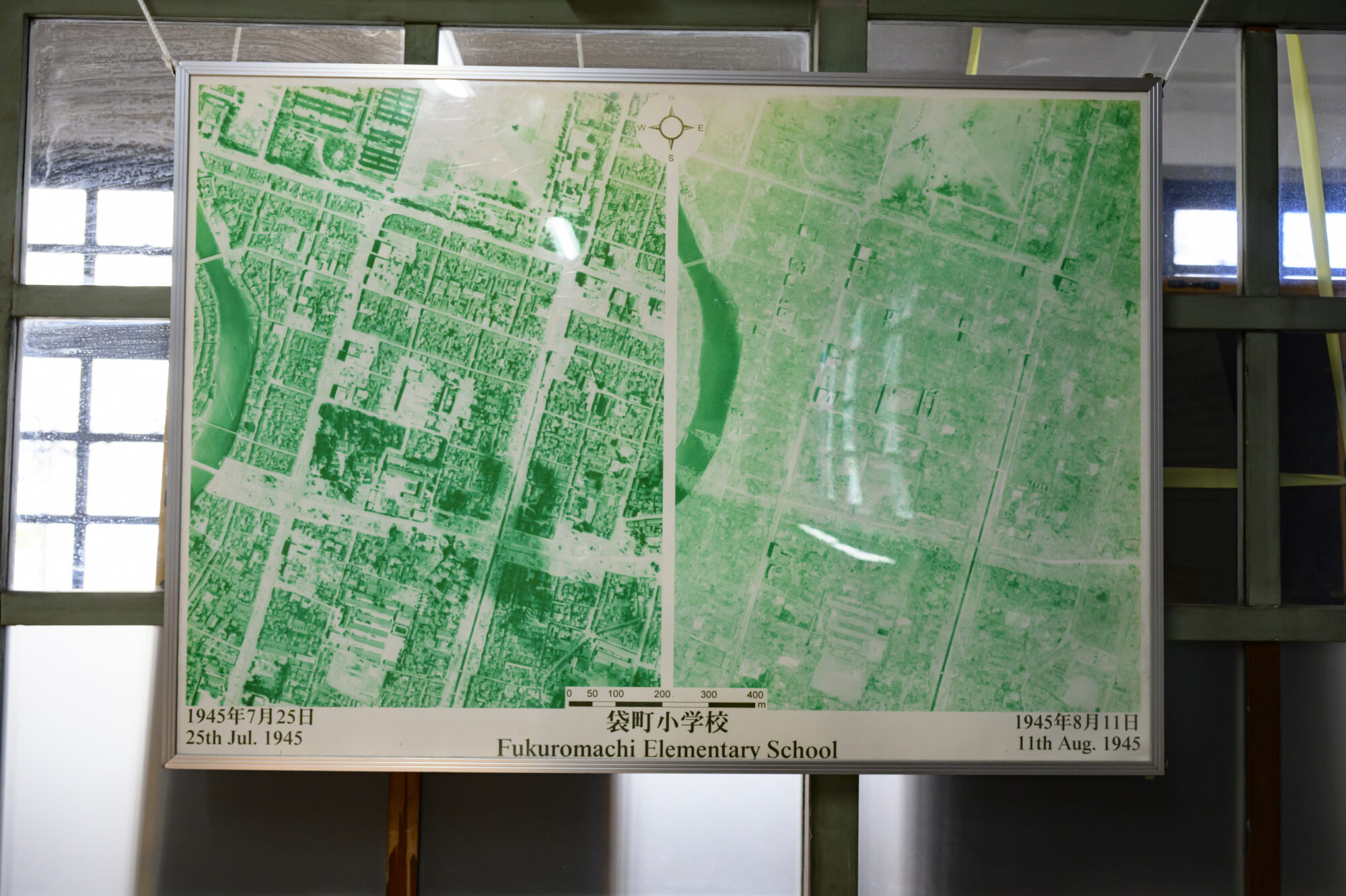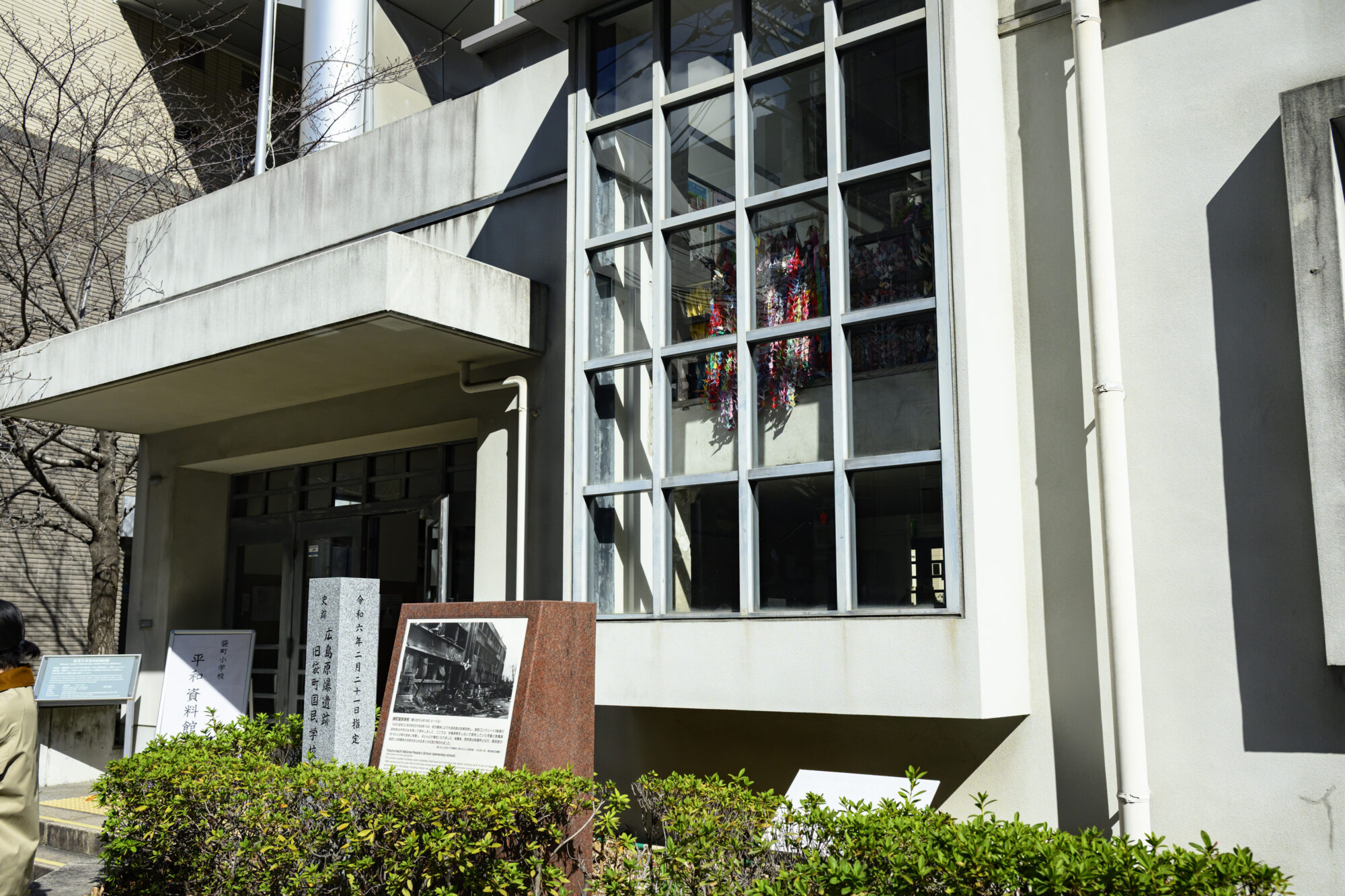 爆心地からわずか460メートルのところに位置するこの小学校は、1945年8月6日の原爆投下によって木造の校舎がすべて倒壊・全焼。しかし、鉄筋コンクリート造だった西校舎の外郭だけが焼け残り、その一部が今も資料館として保存されています。