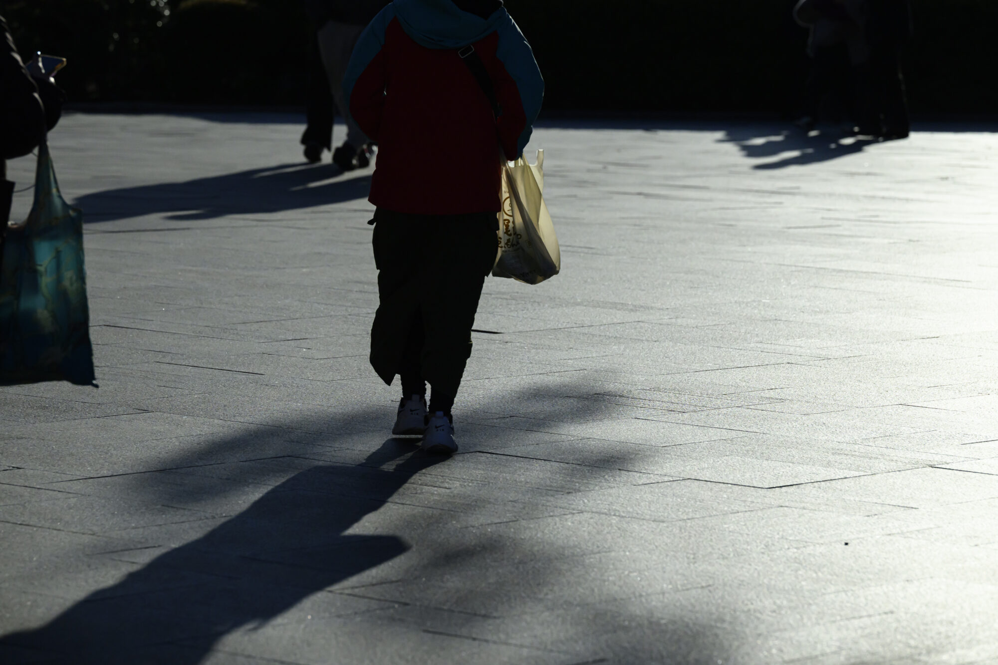 袋町小学校をあとにしたふたりは、平和大通りを西に向かって歩きはじめました。旧太田川が近づくと、春先の冷たい風がびゅうびゅうと吹いてきます。